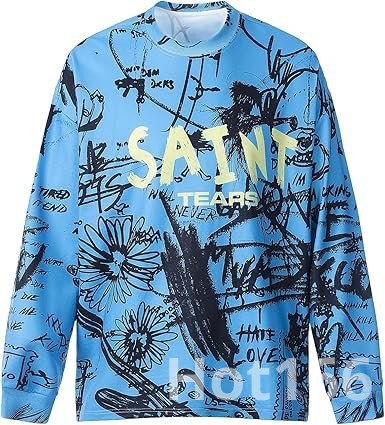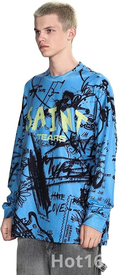 Saint Tears rnodefrance Unisex Vintage Graphic Printing Long Sleeve Shirt Oversized Tee Shirt Cotton Long Sleeve Shirts