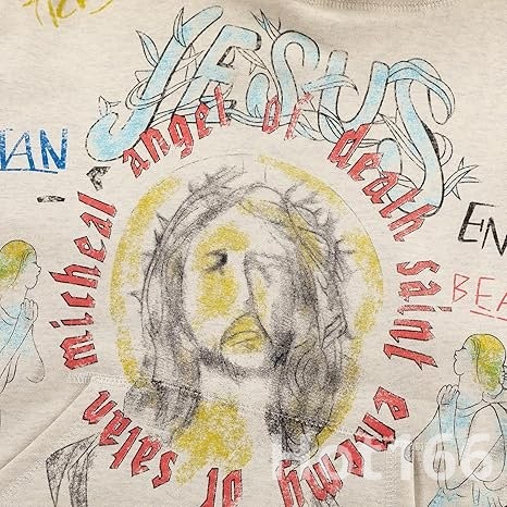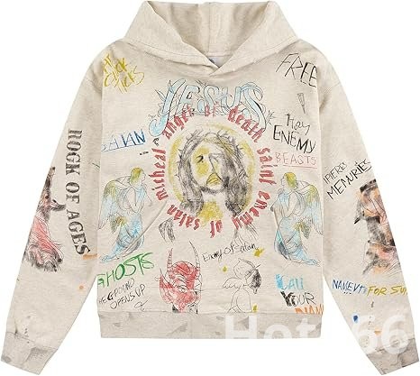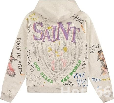 Saint Tears Lucky I See Ghosts Hoodie. Children's "See Ghosts" Men's Western Rapper Gray Sweatshirt.